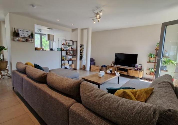 Ruim, energiezuinig DUPLEXAPPARTEMENT van 149 m² bestaande uit: Inkom met vestiaire-kast, apart wc met lavabo, grote living met open volled …